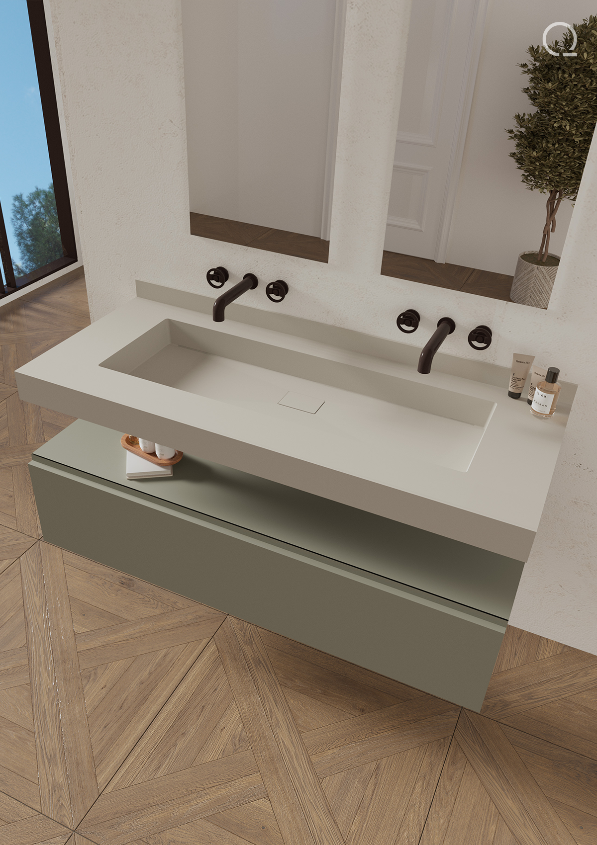 Quarex offers endless possibilities for creating bespoke bathrooms. With over 2,000 colors available in various textures, each product becomes unique.