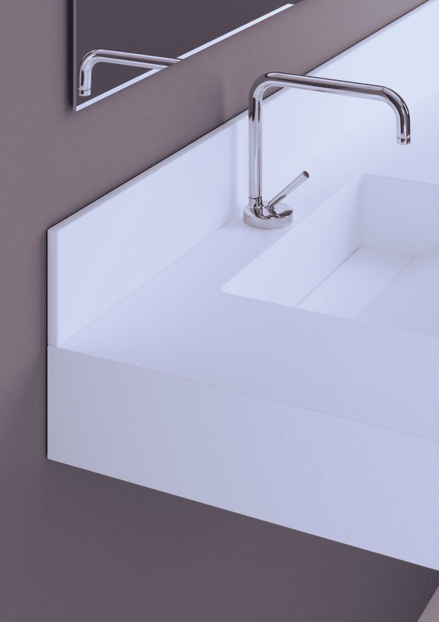 Backsplash for countertop, designed to finish off the back of the countertop and protect the wall from splashes. It provides a clean and functional finish, improving both the aesthetics and hygiene of the bathroom space.
